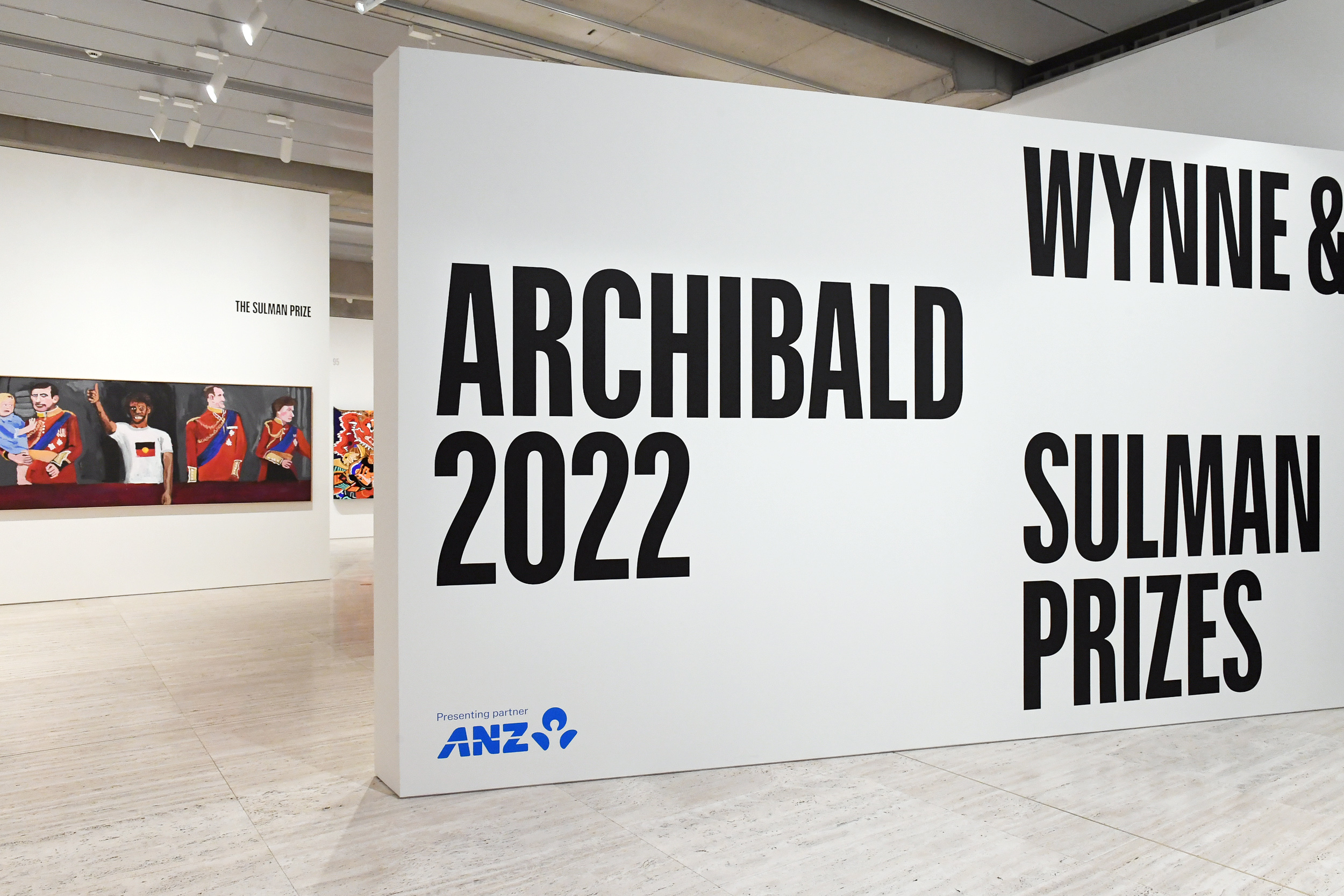 Main image: The entrance to the Archibald, Wynne and Sulman Prizes 2022 exhibition, featuring Vincent Namatjira's 'The royal tour (the balcony)' at the Art Gallery of New South Wales, photo © Art Gallery of New South Wales, Belinda Rolland
