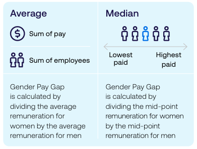Male voice: A gender pay gap is the overall difference in average and median pay between men and women. It’s an important measure of equality across an organisation.