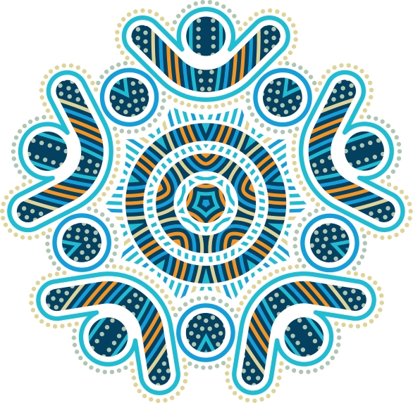 The coloured lines and dotted pathways extend from the people through to community where positive relationships between ANZ and Aboriginal and Torres Strait Islander peoples, communities and organisations can be forged to help shape a world where people and communities thrive.