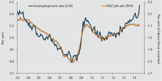 But ANZ expects the unemployment rate to stay elevated for some time with little significant improvement until 2016.