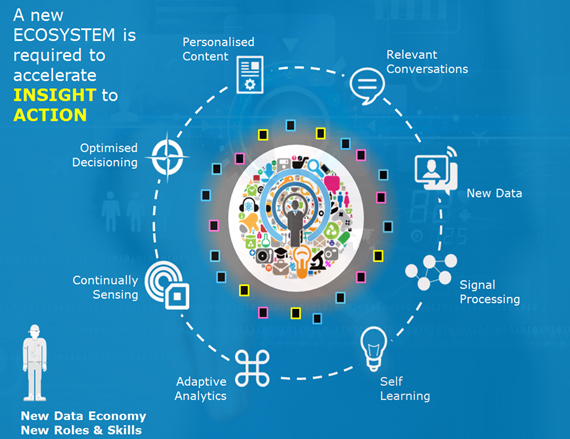 We need to bring new capabilities together into an eco-system. It’s not about predictive models but highly personalised content that creates relevant conversations with our customers. We are informed by new types of data – like video or tone of voice, that pick up on key behavourial signals, and we need to create systems that continually adapt and self-learn.