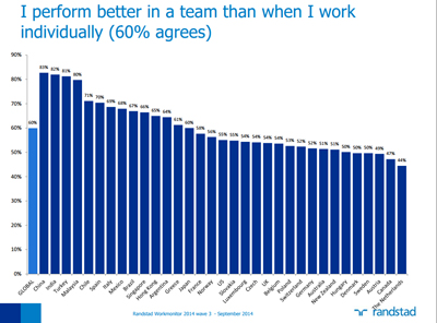 The lack of uptake locally may come down to the fact that half of Australian workers fail to see the benefit of team work, with only 51 per cent claiming to work better in teams, compared to 75 per cent across the rest of Asia.