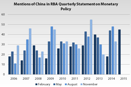 China is now the first foreign country mentioned in most official statements from the RBA and other central banks, getting far more attention than even a couple of years ago.