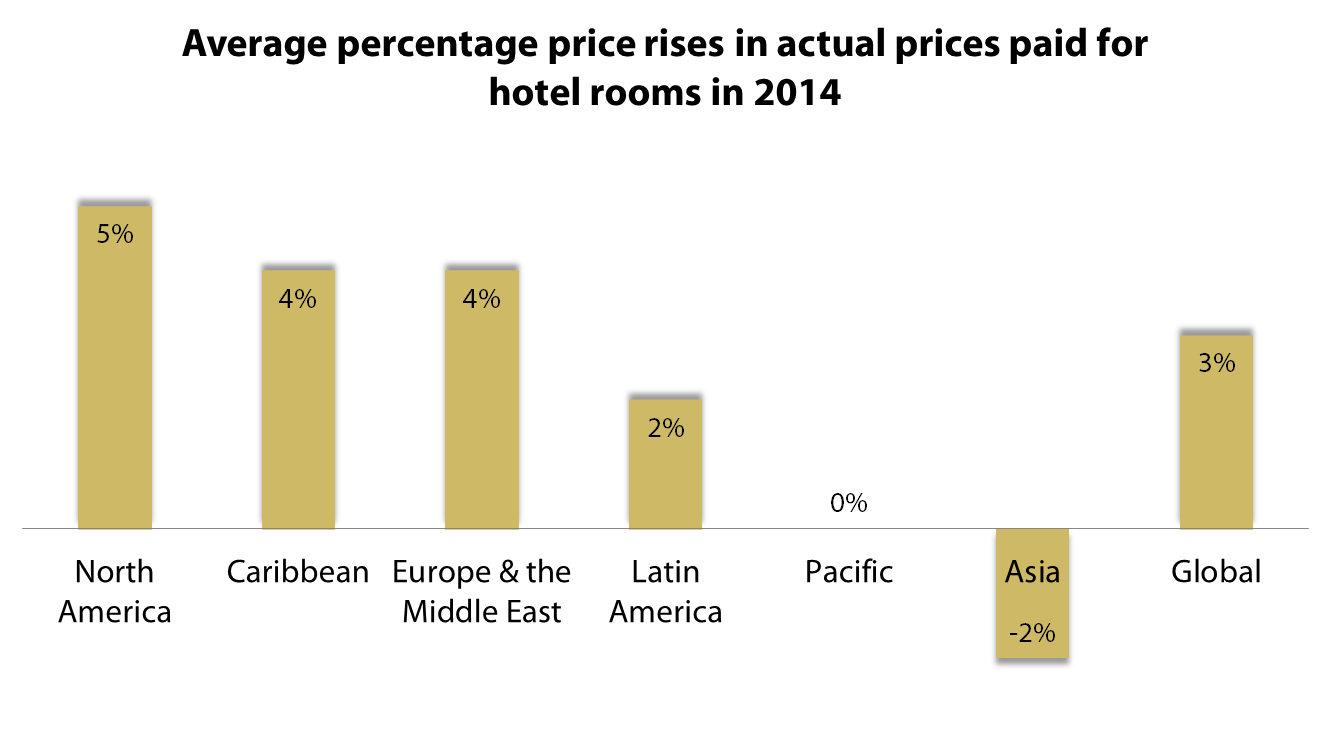 The average price paid for a hotel room around the world rose by 3 per cent in 2014 compared with 2013 – and Asia was the only region in the world where prices actually fell.