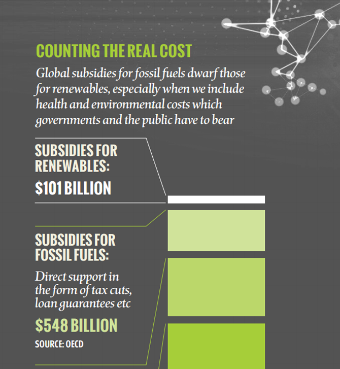 This is in turn leading to major scrutiny of longstanding fossil fuel subsidies to both the mining industries and consumers of their product. Conservative estimates put the subsidies at roughly $US500 billion a year worldwide – over four times as much as global subsidies for renewable energy.