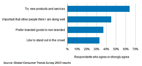 A global survey of 16,300 online consumers revealed many of these consumers are eager to try out new products and services (64 per cent). The perception of doing well also ranked highly, along with consumers’ preference for branded goods. Sales of affordable real jewellery are also skyrocketing as consumers want to look good (affluent) in front of others without paying high prices.