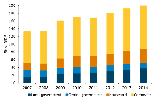 But it’s wrong to judge the risks of China’s loan problem by size alone. As China is still a medium-to-high growth country, high corporate leverage is needed to support investment. Given its rapid urbanisation process China requires intensive capital expenditure and higher-than-normal debt levels.