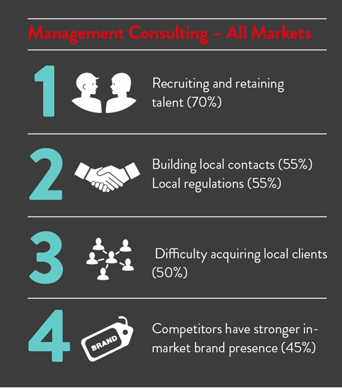 And while many of these opportunities are ripe for the taking, the research revealed they are not without challenges –from overcoming regulatory constraints, to managing and retaining local talent, pricing appropriately, building brand recognition and forging relationships with local governments and clients.