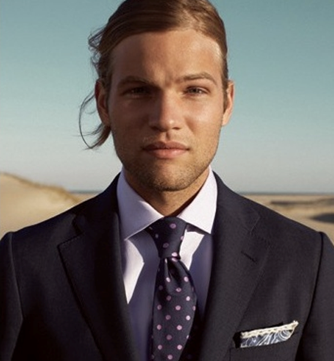 The upside down triangle of lapel, shirt and tie frames the face. Choose colours that work for your complexion. Consider French cuffs. The shirt cuff should be visible beneath jacket cuff. Not too much, not too little.