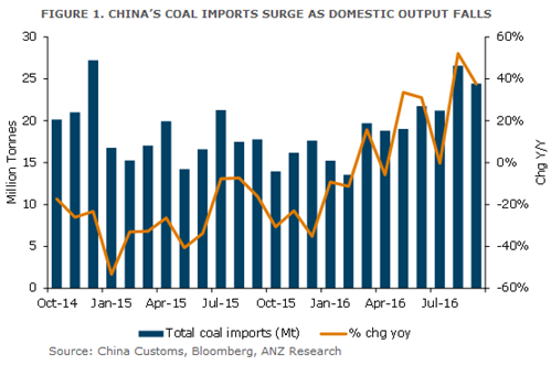 As the Resources and Energy Quarterly also notes, another issue was the spike in electricity demand over China’s hot summer, as well as disruption and mine closures in Indonesia. Heavy rain since early July, a typically dry period, has caused flooding in deeper pits, and disrupted production and hauling activity. Those issues are likely to hamper production throughout 2017.