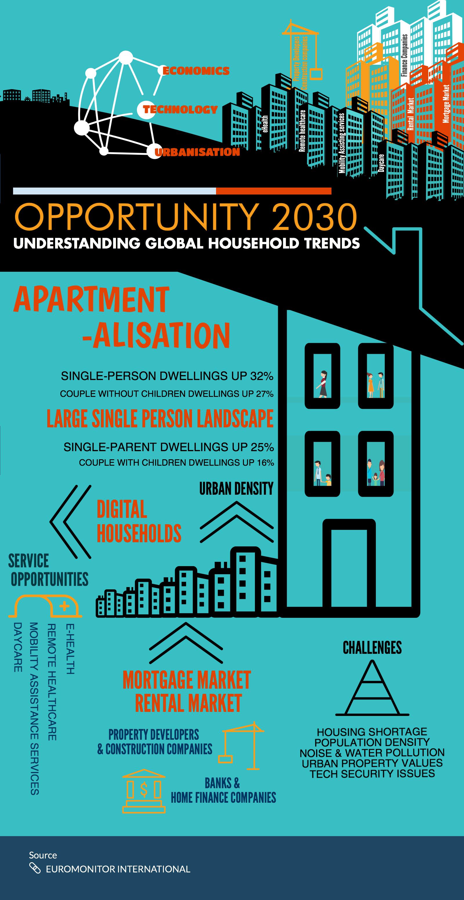 A recent report by Euromonitor International the future landscape of households shows the way we live is heading toward a large single-dwelling landscape in a densely populated urban environment.