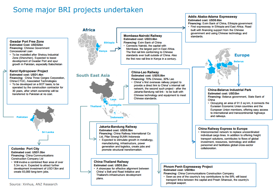 " The Asian Infrastructure Investment Bank has approved 18 infrastructure projects associated with the BRI, with committed funding of $US2.9 billion."
