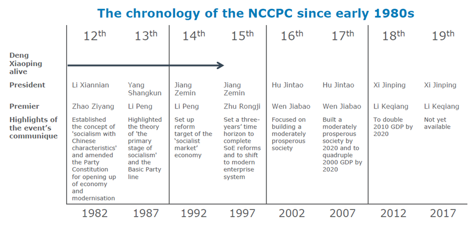 In addition, Xi may coin a new ideology as the current operational target (doubling 2010’s per capita GDP by 2020) may expire soon.