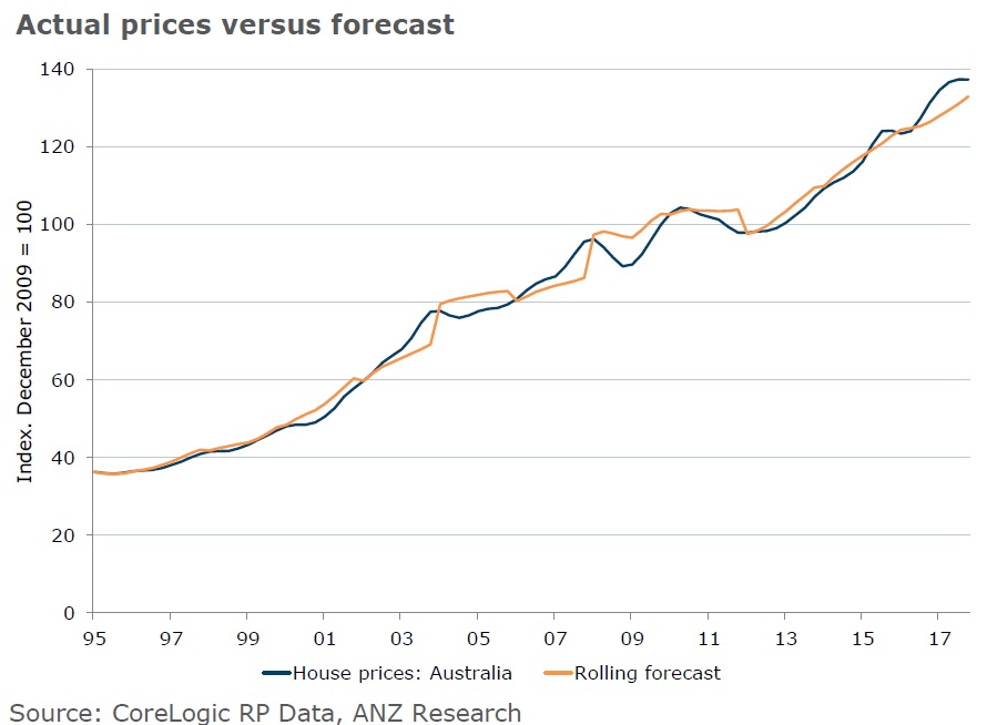 The model provides an additional tool for determining ANZ’s views about the housing market. The forecasts it produces are consistent with the views we published in previous research notes.