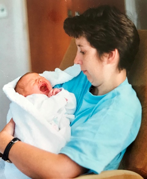 In 1995, Evans’ husband took another six months unpaid maternity parental leave so baby Rhiannon was cared for at home in her first year.