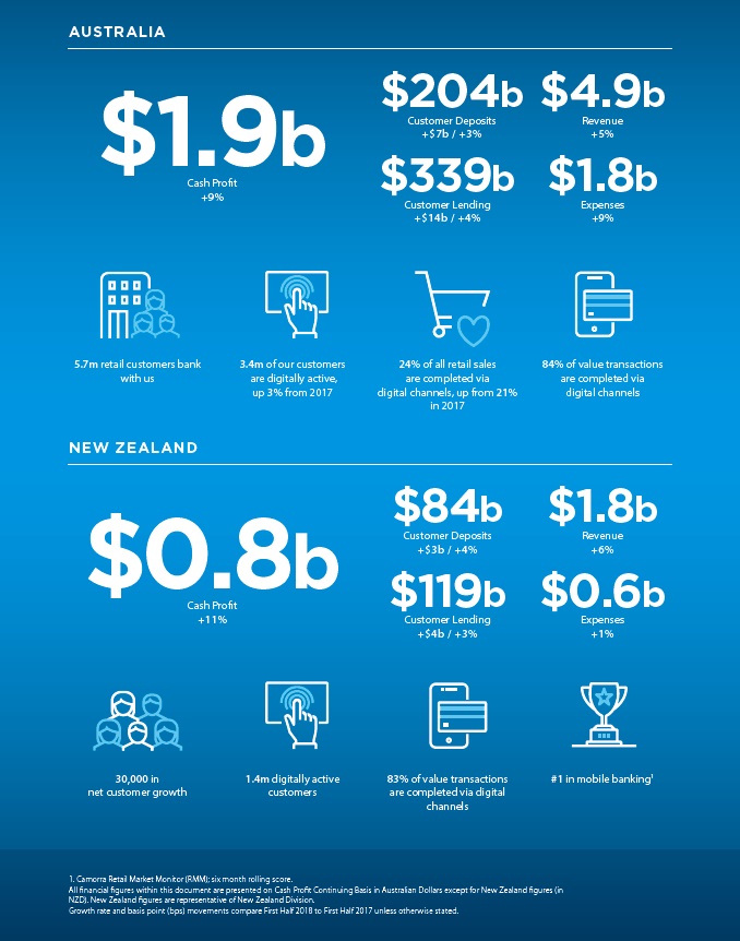 Statutory profit after tax for the same period rose 14 per cent to $A3.32 billion and the bank’s CET capital ratio was 11 per cent.