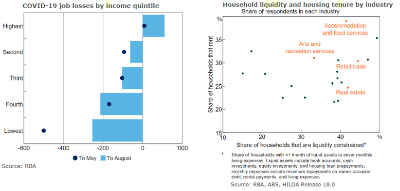 The economic impact of the COVID-19 pandemic and associated restrictions has been uneven, with low-income workers, young people, arts and recreation workers and hospitality workers disproportionately affected by loss of employment and income. On top of this, a relatively high proportion of people in these cohorts rent.