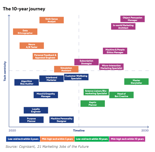 Although the job remains the same - to connect consumers to stories, brands and experiences - teams will include specialists with deep expertise and new titles like Machine and People Ethics Managers, Subscription Strategists and Master Storytellers.