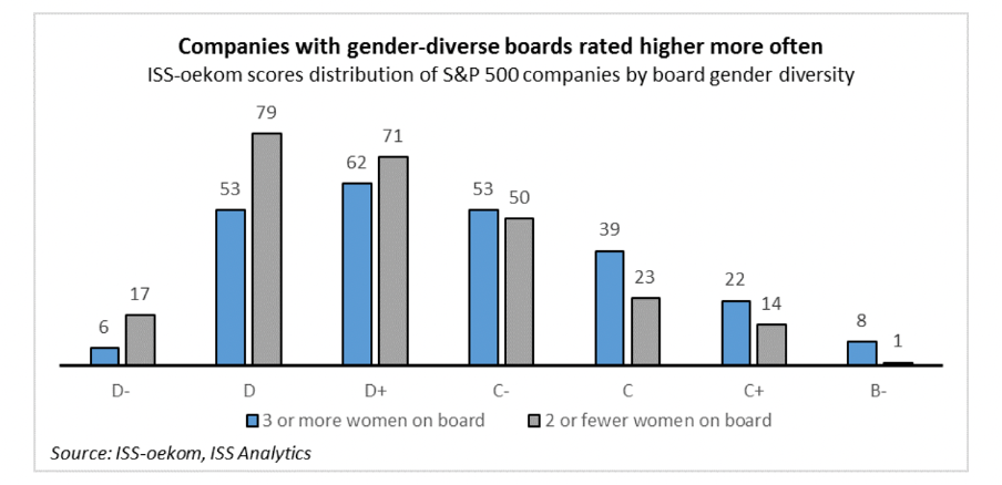 - Companies with more women on their boards are more likely to have stronger environmental policies.