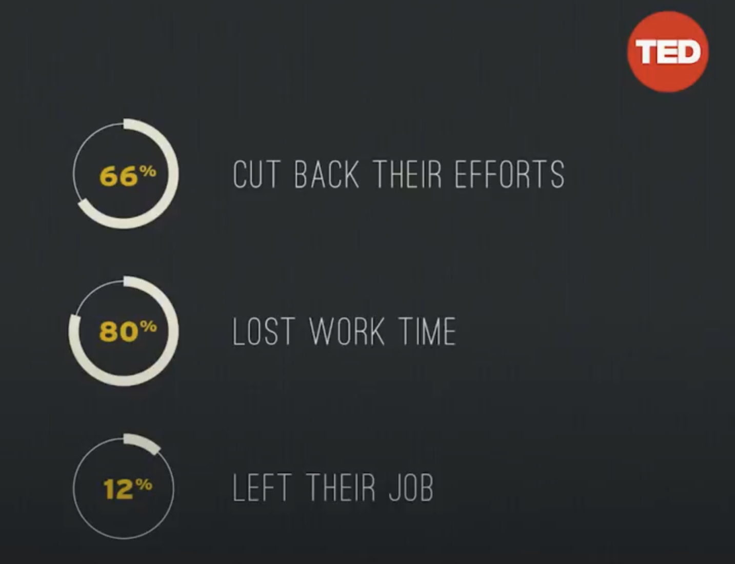 Two thirds cut back on their efforts, 80 per cent lost work time and 12 per cent left their job.