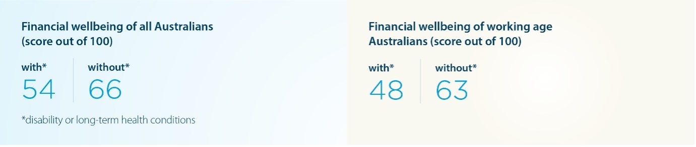 "The research showed a marked difference in the average financial wellbeing scores of people with and without disability and/or chronic health conditions with the biggest gap found in working age Australians living with and without disability.”