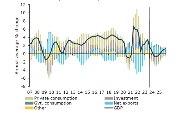 A stagnant housing market, weakening labour demand, slower household spending and reduced business and residential investment will see the economy slip into recession in the second half of the year.