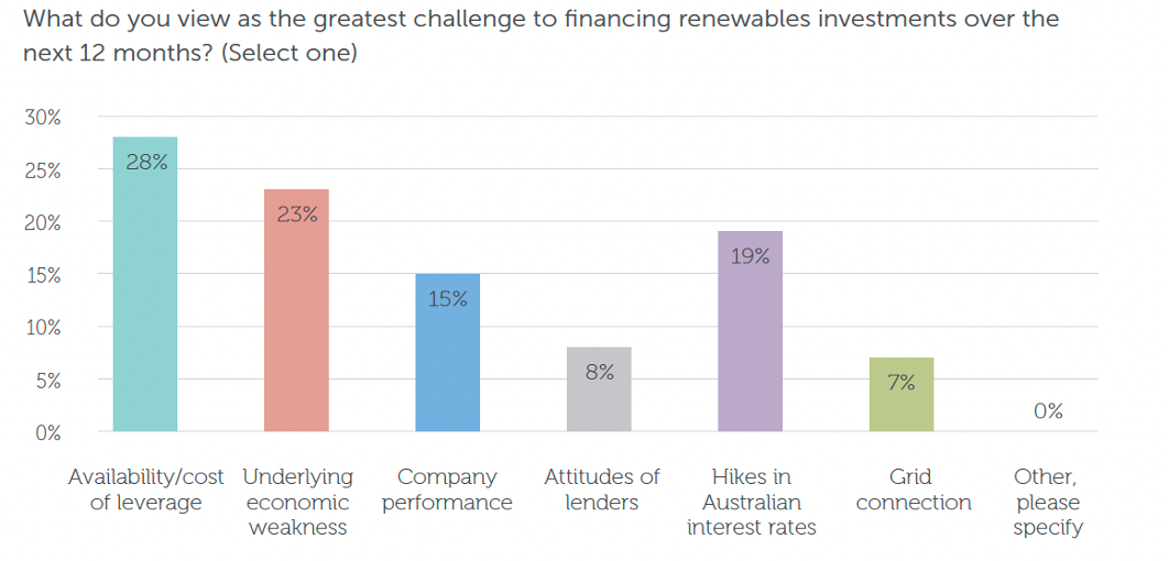 More than half of respondents (53 per cent) hold this view and most respondents (91 per cent) agree new financing and refinancing for renewables projects will become more difficult in the year ahead.