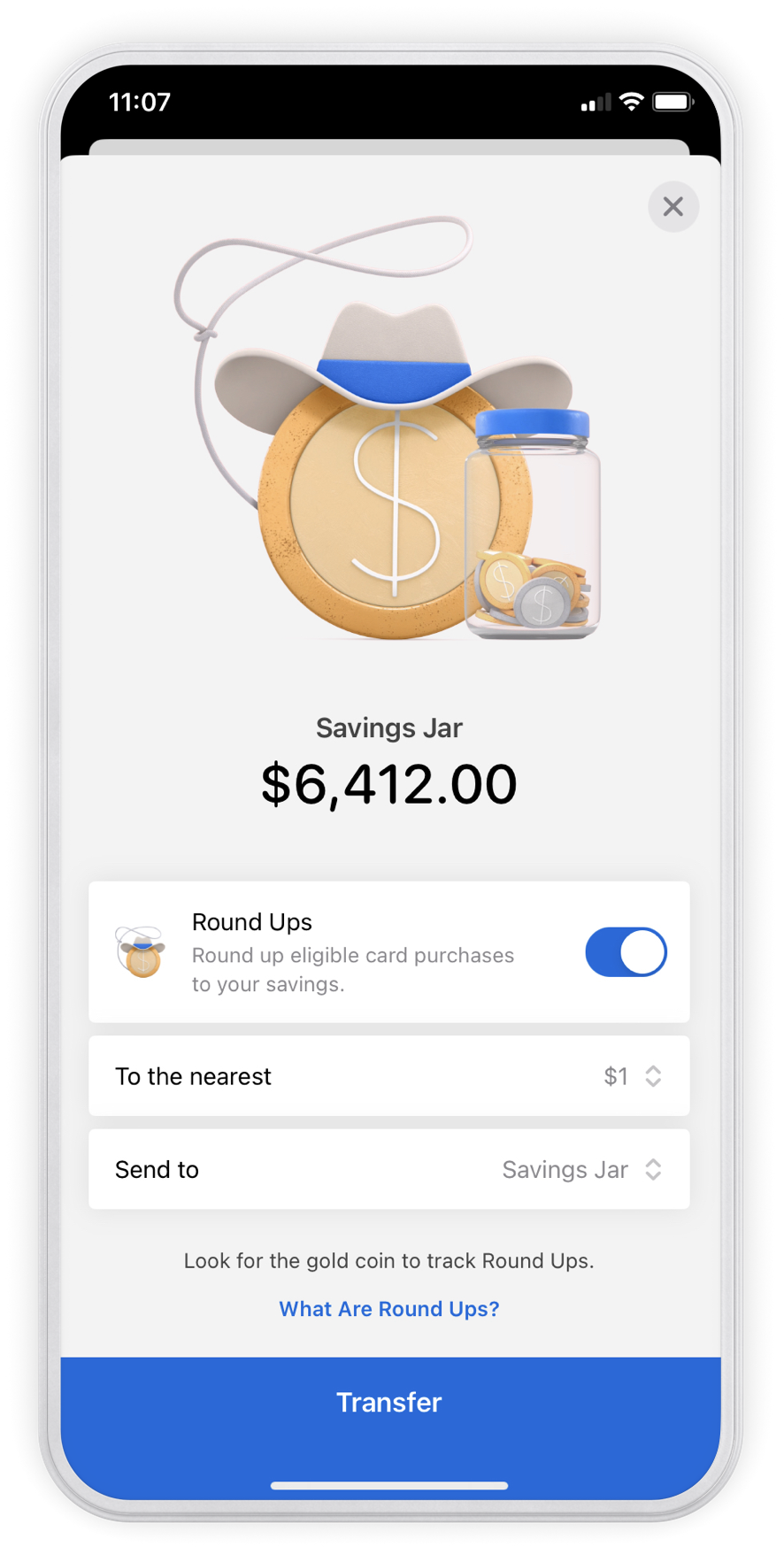 Other recent features include Round Ups, which is like a passive form of saving. With Round Ups, customers can automatically round up eligible card purchases to the nearest $1, $2, $5 or $10 and transfer those funds to their “Savings Jar” or a savings goal. For example, if you set this to the nearest dollar, when you buy your morning coffee for $4.70, 30 cents will automatically go into your savings.