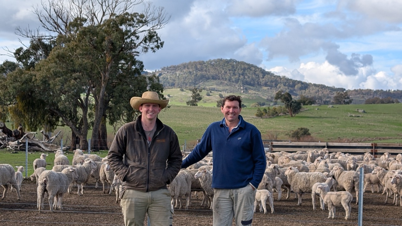 Brian and James Leahy on their sheep farm in Victoria, Australia