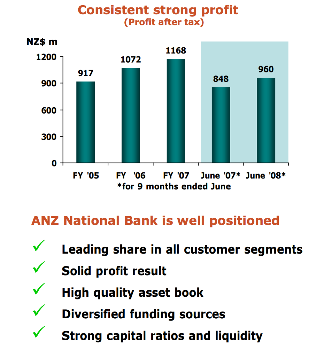 • Assets of NZ$114.9 billion as at 30 June 2008 and NPAT of NZ$960m for 9 months ended 30 June 2008