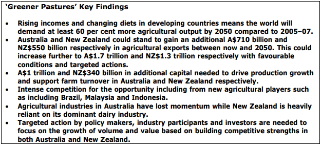 ‘Greener Pastures: The Global Soft Commodity Opportunity for Australia and New Zealand’, a study from Port Jackson Partners commissioned by ANZ, quantifies the size of the opportunity open to Australia and New Zealand agriculture as a result of the shift in global economic growth to Asia.