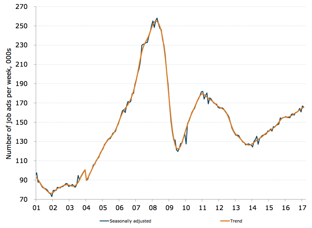 “After a strong rise in January, job ads fell slightly in February. Some moderation in job ads is not unexpected given the strong January result and may reflect the tricky nature of seasonal adjustment at this time of the year.