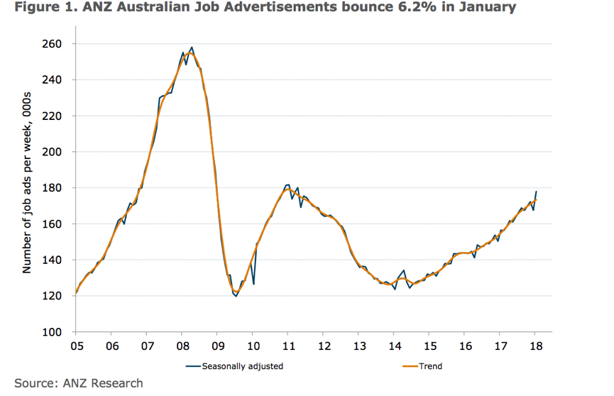 “It is encouraging to see a strong recovery in Job Ads last month after a slight retreat in December. The bounce in January is in line with ongoing strength in business conditions, capacity utilisation and other surveys of employment conditions. Taken together, there is some evidence that the slowdown in the trend we saw in H2 last year may reverse in the coming months. That said, given the seasonal volatility often associated with this time of year, it is perhaps too early to tell for sure.