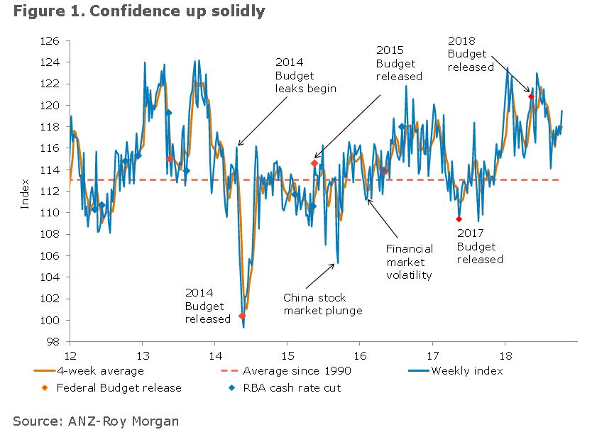 “Confidence rose by 1.9% this week, pushing it to its highest level since late July and above the average for 2018 as a whole. This rise in confidence came despite ongoing strength in petrol prices as well as sharp weakness in equity markets. Regardless, the key takeaway is that consumer sentiment remains resilient despite a number of potentially negative influences. With the strength in the labour market providing clear support to confidence, this week’s employment numbers will be closely watched.”