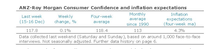 ANZ-Roy Morgan Australian Consumer Confidence was essentially unchanged last week, rising just 0.1%.