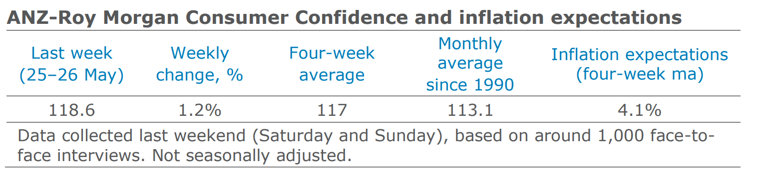 “Consumers are upbeat about both their personal outlook and the economy in general," ANZ Head of Australian Economics, David Plank said.