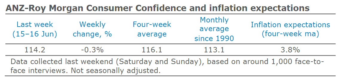 Confidence was down just a notch last week, falling 0.3 per cent.
