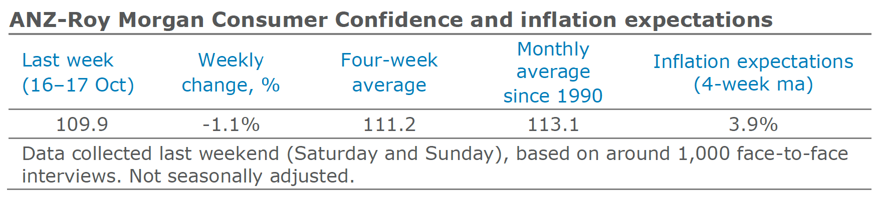 "Confirmation wages are still subdued may also have made households apprehensive about the economic outlook, even if it doesn’t seem to be impacting them directly viafinancial conditions. Renewed weakness in the weekly reading of inflation expectations will be a concern for the Reserve Bank of Australia."