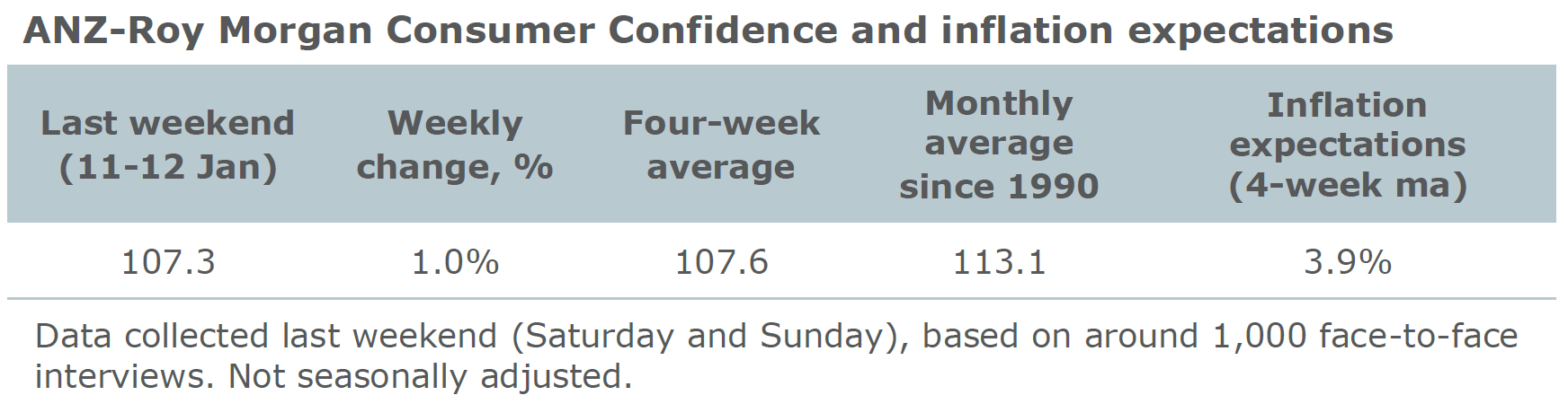 "The weekend’s consumer confidence survey is of considerable interest given the plunge in sentiment in economic conditions recorded over the first weekend of January," ANZ Head of Australian Economics David Plank said.