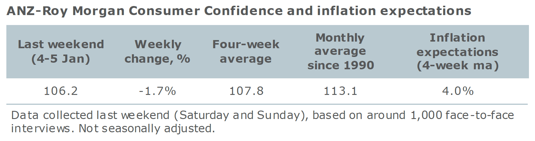 Consumer confidence fell 1.7 per cent last week to its lowest level in more than four years. A drop in confidence at the start of the year is unusual and almost certainly reflects the impact of the catastrophic bush fires over the weekend.