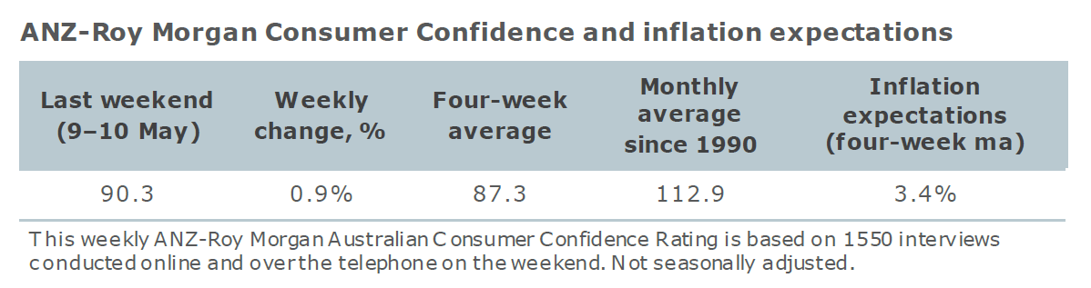 ‘Time to buy a major household item’ gained 8.1 per cent. The four-week moving average for ‘inflation expectations’ was stable at 3.4 per cent, though the weekly reading lifted to 3.5 per cent.