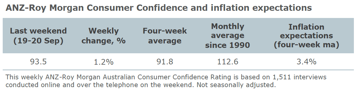 "The positive surprise in the August labour market data may have bolstered sentiment more generally, though it is worth pointing out that confidence is comparable to the level reached during the depths of the GFC."