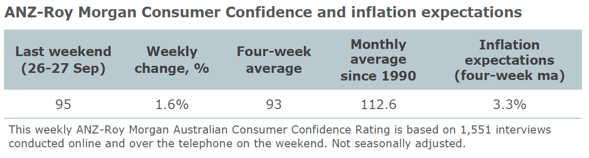 The four-week moving average for ‘inflation expectations’ edged down to 3.3 per cent.