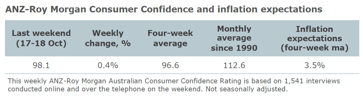 The four-week moving average of ‘Inflation expectations’ remained stable at 3.5 per cent.