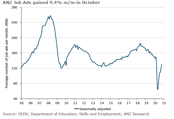 The ANZ Job Ads recovery maintained a steady pace into October, rising