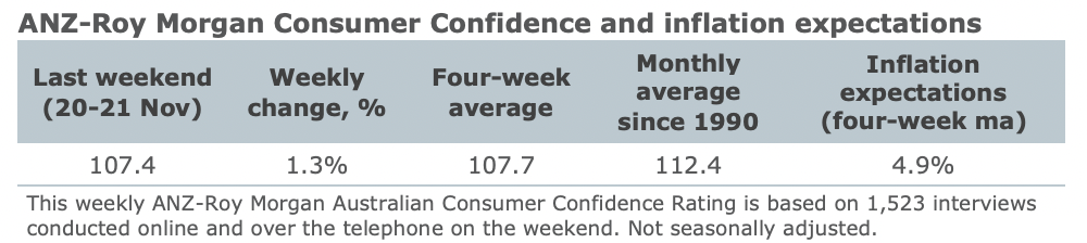 "Inflation expectations decreased 0.4ppt to 4.6 per cent last week despite petrol prices hovering around record highs. This indicator can be volatile from week-to-week, so we are cautious about overreacting to one survey reading. If the fall in inflation expectations is sustained, however, it may be an important signal for wages growth."
