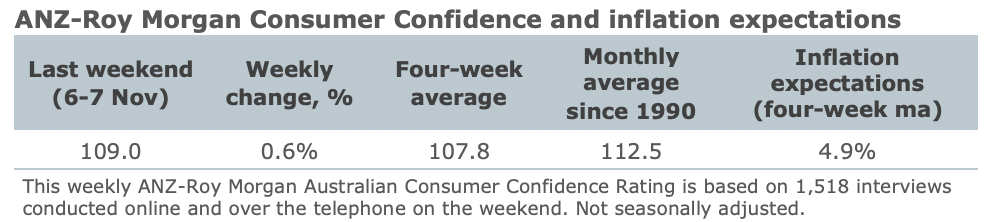 ‘Weekly inflation expectations’ remained elevated at 4.9 per cent and its four- week moving average rose 0.1ppt to 4.9 per cent.