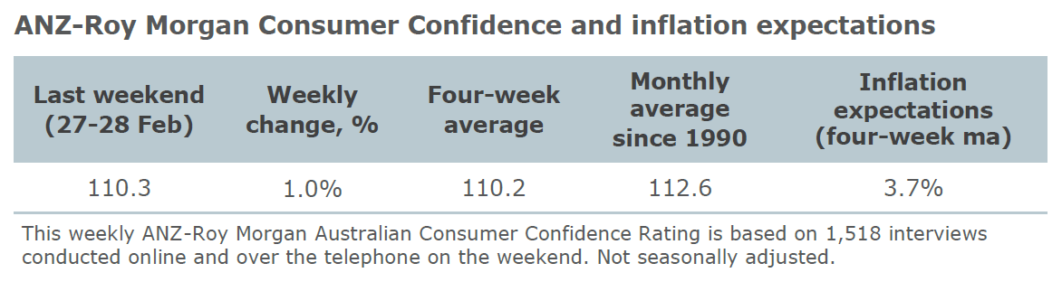 ‘Time to buy a major household item’ surged 4.2 per cent, reversing most of the decline in the previous week. The weekly inflation expectations rose to 3.9 per cent (up 0.3 percentage points).
