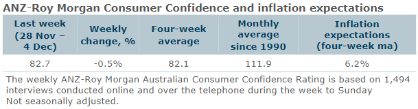 "Consumer confidence softened 0.5 per cent last week after a 5.6 per cent gain over the previous three weeks," ANZ Head of Australian Economics David Plank said.