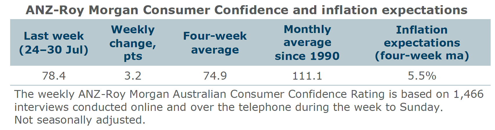 "The increase in confidence was driven by major gains in the ‘future financial conditions’ index ahead of an expected pause from the Reserve Bank of Australia. Still, confidence remains low as households grapple with ongoing high inflation and restrictive interest rates, which is also reflected in falling retail sales.